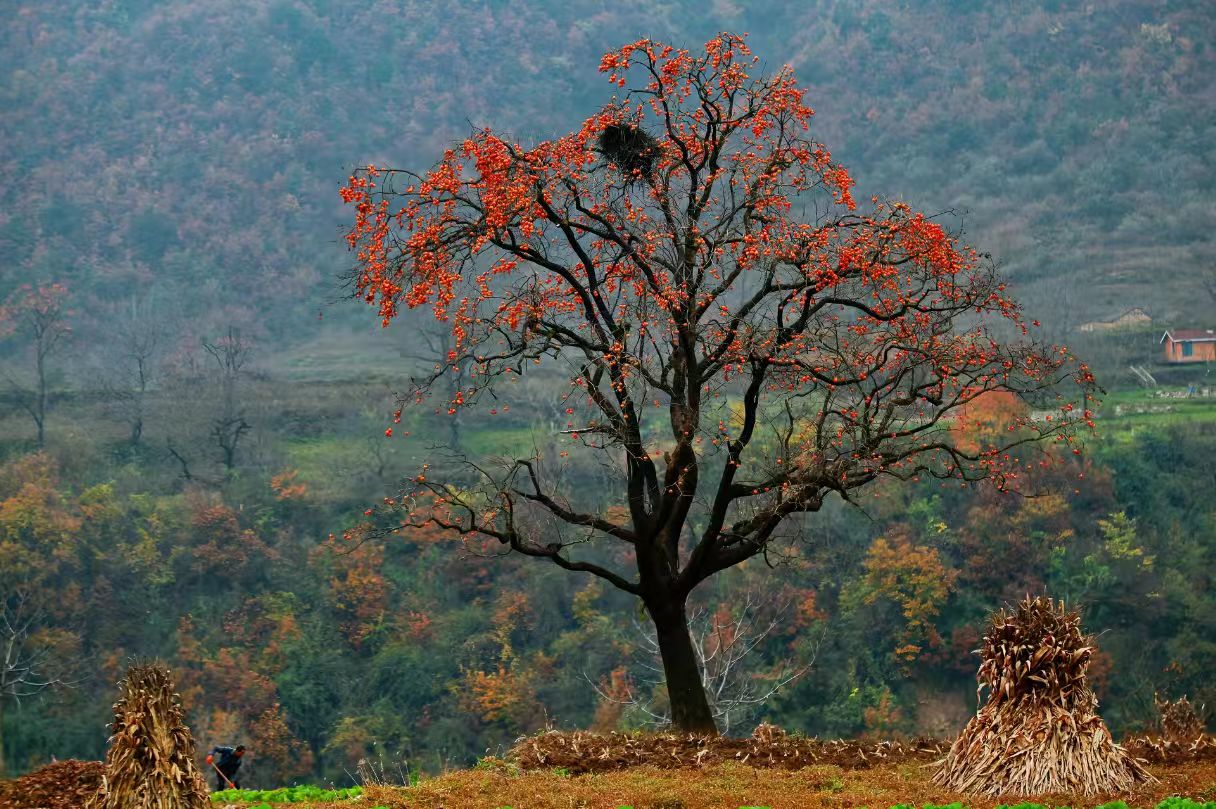 暮色渐浓,炊烟从老屋的青瓦上袅袅升起,与山间的岚气温柔地交融。远处层林尽染,枫是酡红,银杏是明黄,松柏是苍青,交错成一匹华美而安宁的锦绣。父亲走在我前面,身影在苍茫的暮色里愈发显得厚重、稳当,像一座移动的、可以倚靠的小山。