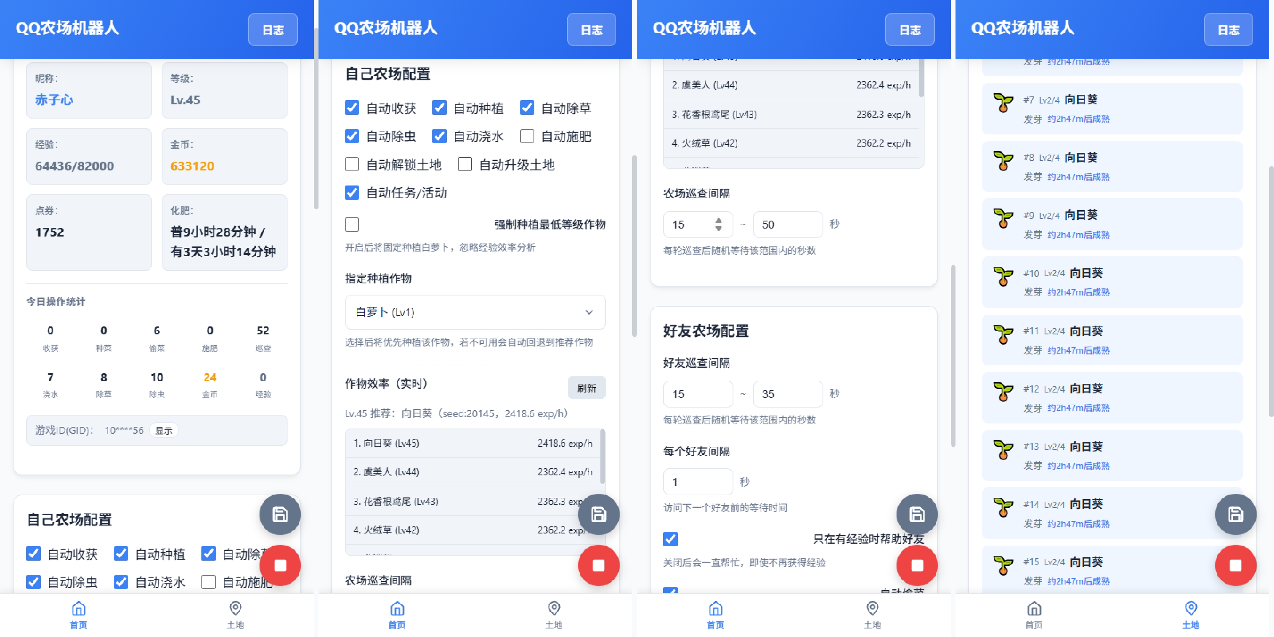 • 多账号支持:支持同时管理多个QQ农场账号,独立配置、独立运行